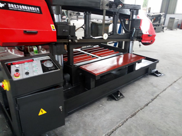 4)虎鉗液壓夾緊,鋸切下的工件不會(huì)松動(dòng),避免壓損鋸帶,保護(hù)鋸帶;