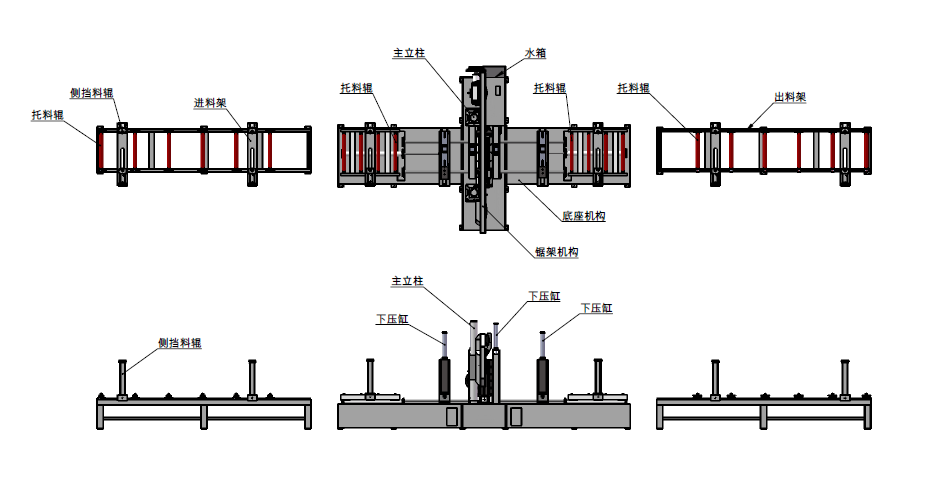 (6)鋸條前后各一套送料床臺,后床臺送到位后,如果還不到設(shè)定尺寸,再由前床臺往前拉,如果還不夠接著再由后床臺往前送,如此循環(huán),直至送夠所需長度開始鋸切。